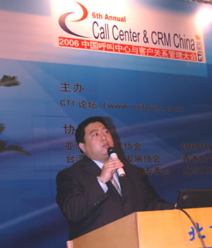 。。2006年4月3日至5日,2006中國呼叫中心與客戶關系管理大會在北京國際會議中心隆重召開,以下是主題演講的相關圖片報道: