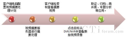 新太視頻摘要比對系統(tǒng)(SUNTEK-VSCS)基于尖端的圖像/視頻理解與圖像搜索技術(shù),通過對海量視頻錄像的智能分析,提取出錄像中的運(yùn)動分量,并進(jìn)行視頻內(nèi)容的整合壓縮,使監(jiān)控人員能在很短的時間內(nèi)通過視頻摘要了解監(jiān)控區(qū)域發(fā)生的事件;系統(tǒng)同時可通過目標(biāo)的特征進(jìn)行搜索比對,快速定位車輛、人員或其它物體等目標(biāo),并提取回放特定目標(biāo)的錄像內(nèi)容。通過該系統(tǒng)可節(jié)約大量的時間與精力,解決人工查看整個視頻流所帶來的困擾。