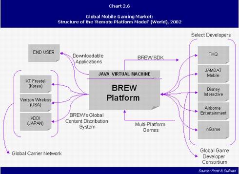 當(dāng)然,企業(yè)對未來的把握也往往和自己對這個(gè)行業(yè)的熟悉程度分不開的,所以微軟今天的策略大都帶有強(qiáng)烈的IT和互聯(lián)網(wǎng)的味道。而移動(dòng)市場當(dāng)中的新貴高通公司,就想當(dāng)年的微軟一樣,偶然性地掌握了CDMA的核心技術(shù),同時(shí)由于移動(dòng)通信在全球的興起,成了移動(dòng)通信價(jià)值鏈中的重要環(huán)節(jié)之一。但是,由于所有的競爭廠家都希望自己擁有核心技術(shù),技術(shù)上略落后,但更開放的GSM得到了更多市場的青睞。為了保持自己的地位,高通采取了與微軟相似的地位,拋出了名為BREW的移動(dòng)應(yīng)用平臺(tái)。與微軟在寬帶和廣電的策略相同,高通在移動(dòng)通信領(lǐng)域提供從技術(shù)、服務(wù)到外包運(yùn)營等全套解決方案。在移動(dòng)游戲領(lǐng)域,高通為美國第一大無線運(yùn)營商Verizon搭建了基于BREW的游戲業(yè)務(wù)平臺(tái),同時(shí)負(fù)責(zé)這一平臺(tái)的運(yùn)圍和與游戲提供商的合作及管理、促銷等工作。與Verizon的合作是獨(dú)家的,建立在利潤分成的基礎(chǔ)上,到現(xiàn)在為止,這種模式是移動(dòng)游戲領(lǐng)域最成功的合作之一?梢哉f,高通把自己變成了半個(gè)運(yùn)營商,同時(shí)由于擁有客戶資源和合作模式提供,高通的地位有望超過Verizon。