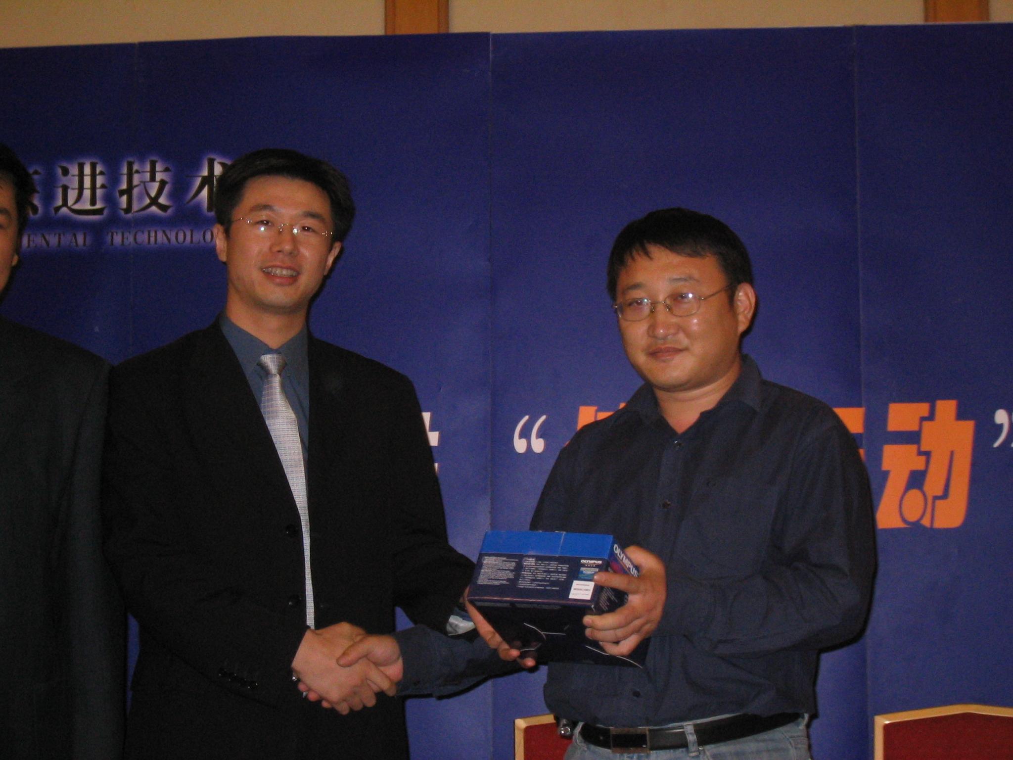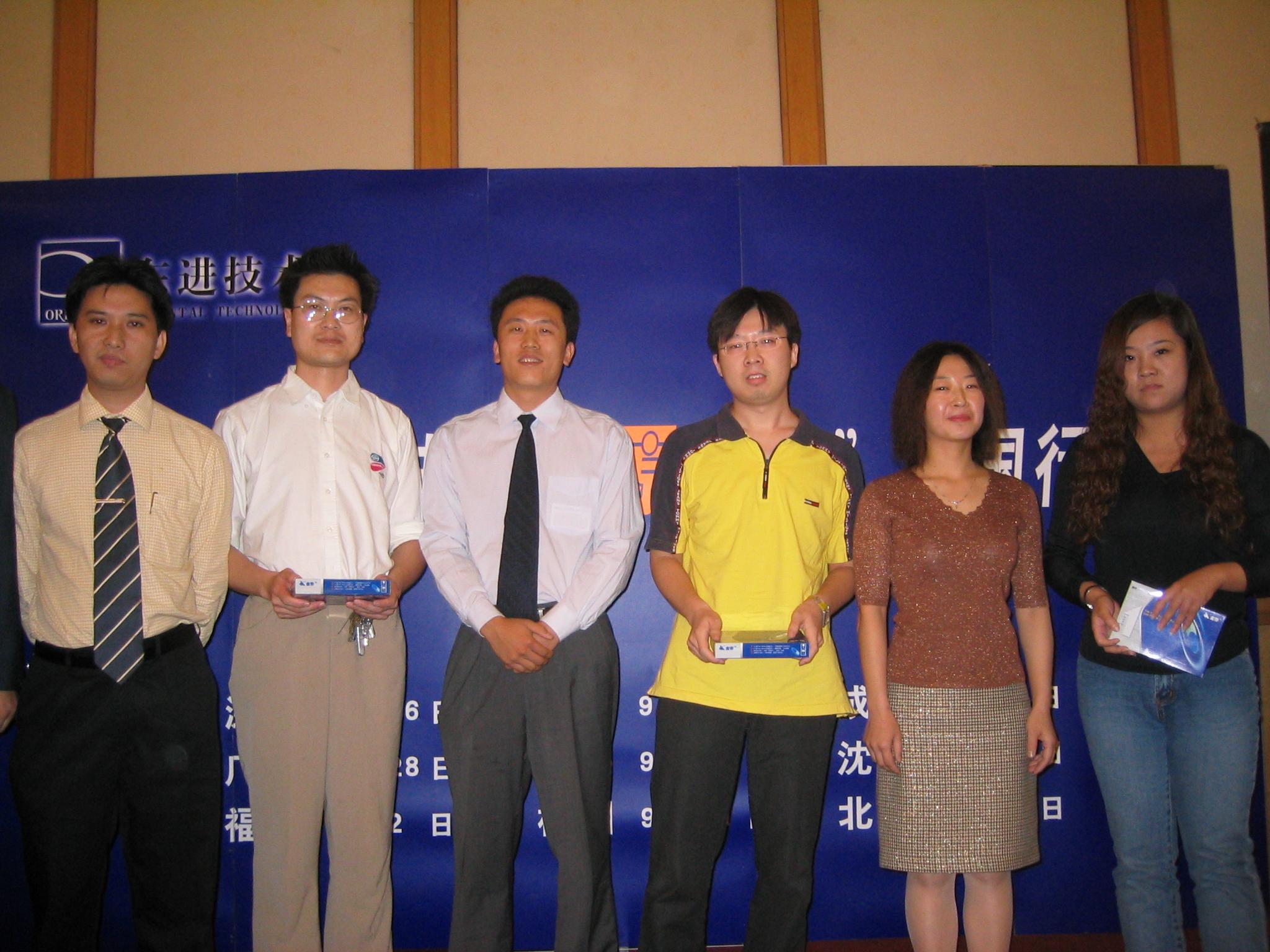 東進(jìn)公司營(yíng)銷(xiāo)中心總經(jīng)理羅斌和特等獎(jiǎng)獲得者合影