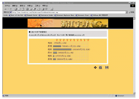 宇峰公司(www.fromforty.com)是柯達(dá)(中國(guó))有限公司在中國(guó)華東地區(qū)的總代理,負(fù)責(zé)管理華東地區(qū)近600個(gè)分銷(xiāo)商和連鎖店。公司非常重視信息化建設(shè),添設(shè)了大量的計(jì)算機(jī),建立起初步的管理系統(tǒng)。但是直到2000年還是依靠E-mail傳遞大量的Excel表格獲取需要的產(chǎn)品銷(xiāo)售和庫(kù)存的信息。這些表格對(duì)各級(jí)分銷(xiāo)商查詢(xún)和統(tǒng)計(jì)數(shù)據(jù)來(lái)說(shuō)非常麻煩,因?yàn)槊恐芤幚韼装賯(gè)訂購(gòu)單。整個(gè)處理過(guò)程非常緩慢,并且成本很高,也容易造成各種的數(shù)據(jù)錯(cuò)誤。而公司內(nèi)部對(duì)業(yè)務(wù)人員銷(xiāo)售情況的統(tǒng)計(jì),也頗為麻煩,因?yàn)橄录?jí)分銷(xiāo)商上報(bào)上來(lái)的數(shù)據(jù)準(zhǔn)確性差,并且不夠及時(shí)。處理這些表格對(duì)宇峰公司和分銷(xiāo)商以及連鎖店而言都是效率很低的,并且常常令人茫然不知所措。