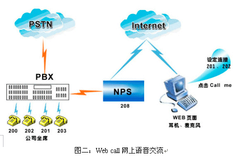 “無聲”一直是企業(yè)電子商務(wù)的最大遺憾,因為“無聲”,許多消費者卻步了。怎樣把語音和Web在網(wǎng)絡(luò)上結(jié)合起來?這正是星際網(wǎng)絡(luò)推出的web call系統(tǒng)(如圖二所示)的目標(biāo)。消費者點擊點擊呼叫按鈕,就可以通過麥克風(fēng)與客服代表通話。并且網(wǎng)上來電與普通來電一樣,經(jīng)過交換及排隊處理,同樣支持來電資料彈出。對客戶來說,只需要一臺接入Internet的多媒體電腦和免費的客戶端軟件就可實現(xiàn)Web瀏覽和交談功能。這個功能不僅可以讓客戶獲得更好的售后服務(wù),在售前服務(wù)中也可以發(fā)揮巨大效用。家電產(chǎn)品的特性使得消費者在購買之前必須對產(chǎn)品有充分了解,在網(wǎng)站瀏覽中通過與客戶代表的交流增進(jìn)產(chǎn)品了解,刺激其購買欲望。讓家電行業(yè)的網(wǎng)上商務(wù)的更有效。