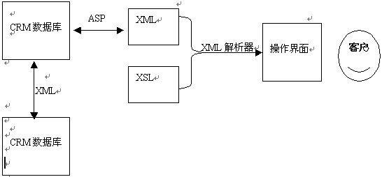 包括客戶資料,銷售報表等相關(guān)的客服信息都存儲在數(shù)據(jù)庫中,通過ASP應(yīng)用程序取出需要的數(shù)據(jù)生成符合條件的XML文檔,再通過安裝在服務(wù)器端的XML解析器按照預(yù)先設(shè)定的排版樣式XSL解析XML文檔,最后生成符合條件的HTML格式的CRM操作界面呈現(xiàn)在客戶面前?蛻魯(shù)據(jù)可能來自不同的數(shù)據(jù)庫,并且都有各自不同的復(fù)雜格式。但客戶與這些數(shù)據(jù)庫間只通過一種標(biāo)準(zhǔn)語言進(jìn)行交互,那就是XML。由于XML的自定義性及可擴(kuò)展性,它足以表達(dá)各種類型的數(shù)據(jù)?蛻羰盏綌(shù)據(jù)后可以進(jìn)行處理,也可以在不同數(shù)據(jù)庫間進(jìn)行傳遞。
