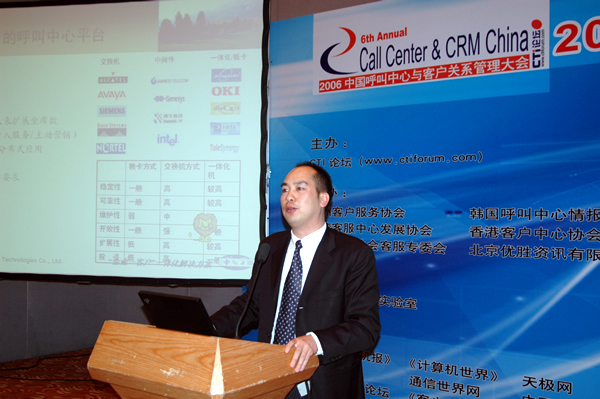 2006年4月3日至5日,2006中國(guó)呼叫中心與客戶關(guān)系管理大會(huì)在北京國(guó)際會(huì)議中心隆重召開,以下是星際網(wǎng)絡(luò)的執(zhí)行副總裁柳國(guó)東專題演講實(shí)錄: 第一個(gè)特點(diǎn)就是我們提出來了一個(gè)全程一體化的服務(wù)解決方案。整個(gè)解決方案有三個(gè)層面,第一個(gè)層面就是我們要和企業(yè)一起建設(shè)一個(gè)適用的呼叫平臺(tái)。現(xiàn)在我們企業(yè)在選擇建立呼叫中心的時(shí)候也有一些困惑,比如說我要建設(shè)一個(gè)30個(gè)坐席的呼叫中心,可能很多集成商的方案和報(bào)價(jià)從20萬到100萬都有,現(xiàn)在各個(gè)呼叫中心的平臺(tái)都已經(jīng)很成熟了,但是作為企業(yè)來講,要選擇一個(gè)適合自己的呼叫中心,而不是選擇昂貴的或者是低廉的。我們建立呼叫中心以后可以進(jìn)行高效率的電話接聽和服務(wù)人員的管理平臺(tái)。但是并不能解決我們服務(wù)的流程管理、流程監(jiān)控。咨詢的結(jié)果我們并沒有因?yàn)榻⒑艚兄行木桶褑栴}解決了。所以我們星際網(wǎng)絡(luò)提出了服務(wù)應(yīng)用的概念。一般來說現(xiàn)有的企業(yè)大概的服務(wù)方式有兩種,那么星際網(wǎng)絡(luò)根據(jù)這兩種不同的服務(wù)模式,我們也提供了相應(yīng)的服務(wù)應(yīng)用。我們希望通過一個(gè)前臺(tái)高效的服務(wù)中心平臺(tái),和后臺(tái)一個(gè)豐富的系統(tǒng)應(yīng)用,真正幫助企業(yè)解決完成的客戶流程。