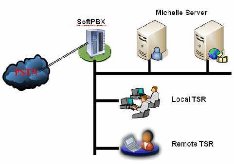 東柏SoftPBX呼叫中心基于Asterisk軟件和Digium卡構(gòu)建,支持4個(gè)E1/T1接入PSTN網(wǎng)絡(luò),通過IP接入到企業(yè)內(nèi)網(wǎng)及外部網(wǎng)絡(luò)。分機(jī)支持IP軟電話、IP硬電話、模擬分機(jī)等。在本方案中,每個(gè)坐席配備一臺(tái)計(jì)算機(jī),通過Michelle客戶端(內(nèi)置軟電話)撥打接聽電話并進(jìn)行業(yè)務(wù)處理,同時(shí)系統(tǒng)還提供市場(chǎng)活動(dòng)管理、外撥名單分配、呼入路由、語音導(dǎo)航、通話錄音、在線監(jiān)控等功能。本方案還提供了部分IP Office的功能,如一號(hào)通、語音郵箱、語音會(huì)議等。