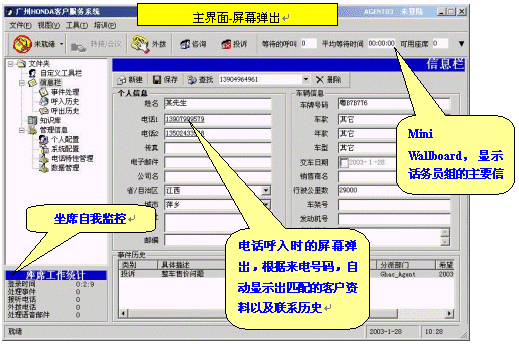 當(dāng)客戶的電話被轉(zhuǎn)到客戶服務(wù)人員時(shí),客戶的所有相關(guān)信息將自動(dòng)彈出顯示在服務(wù)人員的電腦屏幕上,包括歷史接觸記錄信息等,這樣就能提供最具有針對(duì)性和高效率的服務(wù)。如果是新客戶,那么服務(wù)人員將即時(shí)錄入信息,動(dòng)態(tài)擴(kuò)充數(shù)據(jù)庫。