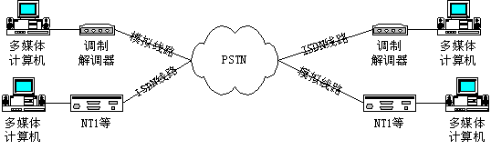 采用ISDN數(shù)字線路時(shí),實(shí)現(xiàn)PSTN電話語(yǔ)音方式的連接圖如下: