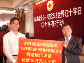 4月,SARS在北京肆無忌彈的橫行,其它國家和地區(qū)也都不同程度地受到SARS的侵害,給人民的生活和工作帶來了極大的影響,人們的身體健康和生命安全受到了威脅。中國紅十字會廣大工作人員對此次疫情迅速響應(yīng),為了支持中國中國紅十字會總開展SARS疫情的救助和捐贈工作,幫助其通過現(xiàn)代化的通訊手段快速準確的進行話務(wù)處理,以便更好地保護人民的生命和健康,4月30日,奧迪堅通訊系統(tǒng)(上海)有限公司聯(lián)合北京華泰貝通科技貿(mào)易有限責(zé)任公司向中國紅十字會總會捐贈了價值約10萬余人民幣的呼叫中心系統(tǒng),軟件以及相關(guān)服務(wù),以實際行動幫助中國紅十字會總會抗擊SARS。