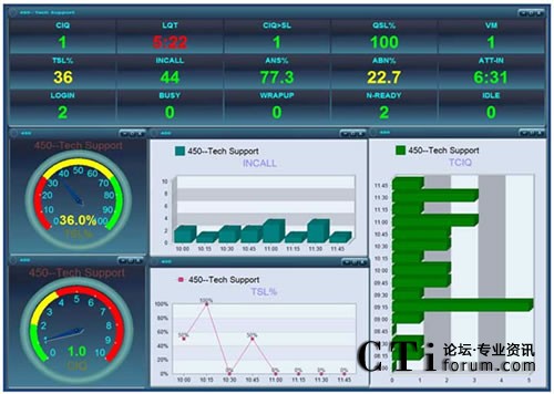 事實(shí)上,MaxInSight大屏顯示軟件,是奧迪堅(jiān)MAXCS產(chǎn)品系列中一個(gè)工作組狀態(tài)顯示程序。它可以通過掛壁式的LCD大屏或PC電腦顯示屏來實(shí)時(shí)顯示工作組的工作狀態(tài)和運(yùn)行數(shù)據(jù),以供呼叫中心的管理員和座席參考。他可以顯示單個(gè)或多個(gè)工作組的實(shí)時(shí)隊(duì)列狀態(tài)、實(shí)時(shí)工作組資源狀態(tài)、每日工作績(jī)效以及一段時(shí)間內(nèi)的數(shù)據(jù)趨勢(shì)。同時(shí)MaxInSight軟件還配備了很多個(gè)性化的功能,將坐席工作變得更加豐富多彩。