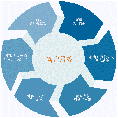 客戶服務(wù)不僅限于把公司提供給客戶使用。客戶服務(wù)是與客戶交互的一個(gè)完整過程,包括聽取客戶的問題和要求,對(duì)客戶的需要作出反應(yīng)并探詢客戶新的需求。我們真的不能將其看成一個(gè)簡(jiǎn)單的過程?蛻舴⻊(wù)可以用一個(gè)復(fù)雜的循環(huán)來表示,其中不僅僅包括了客戶和客戶服務(wù)部門,實(shí)際上包括了整個(gè)公司,即把公司整體作為一個(gè)受客戶需求驅(qū)動(dòng)的對(duì)象。