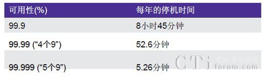 下表顯示了24x7x365全天候系統(tǒng)的可用性。聯(lián)絡(luò)中心的可用性以“正常運行時間”或者解決方案用于適當處理客戶互動的時段來表示。