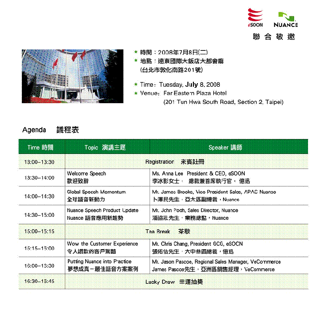 eSOON & Nuance 誠摯地歡迎您蒞臨指導(dǎo)!