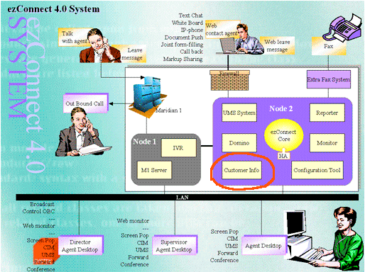 作為一種成功的企業(yè)應(yīng)用案例,這種方案已經(jīng)成功的應(yīng)用在我們的企業(yè)級多媒體呼叫中心 ezConnect™產(chǎn)品中,該產(chǎn)品能同時(shí)處理傳統(tǒng)呼叫中心的電話請求和以互聯(lián)網(wǎng)為中心的Web 請求,同時(shí)配備多種實(shí)時(shí)交流手段,軟電話功能和基于web 的文本交談,圖片共享,白板,文檔推送,IP電話,UMS, SMS 和WAP 等為客戶提供很方便且實(shí)用的功能, 并且提供基于特定技能路由的分配器,同時(shí)處理電話和Web請求。而且同時(shí)支持多種語言并提供統(tǒng)一的配置工具。當(dāng)該請求到達(dá)座席時(shí),在座席的桌面上彈出客戶的基本信息和交易信息,座席可以根據(jù)這些信息給客戶提供更加個(gè)性化的服務(wù)。本文就針對該產(chǎn)品的實(shí)際開發(fā)和實(shí)現(xiàn), 以及工作中的一些感想來與大家共同探討客戶信息管理的應(yīng)用和前景。