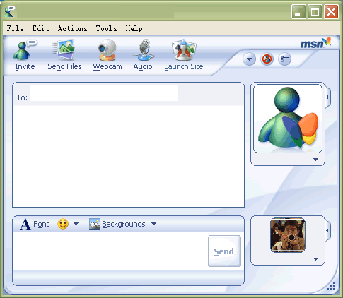從聊天界面來看,兩者的類似更多。MSN Messenger 6.0在聊天界面比以前有了大幅改變,增加了聊天的兩者的頭像,并且可以方便的對自己的頭像進(jìn)行修改。同時(shí)還可以輕松的修改聊天界面的背景。同時(shí)可以通過上面的圖標(biāo)按鈕邀請他人參與,發(fā)送文件,視頻聊天等。QQ