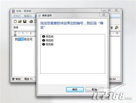 Vista在轉(zhuǎn)譯你的聽寫時(shí)很可能會(huì)產(chǎn)生錯(cuò)誤。而只得慶幸的是它們能夠很容易地得到糾正。例如,如果你說“我現(xiàn)在能說任何”,而Vista輸入的是“我不能說任何”,這時(shí)你可以說“更正不能”,接著你就會(huì)看到一個(gè)清單,里面列有可替換的詞,如圖10所示。