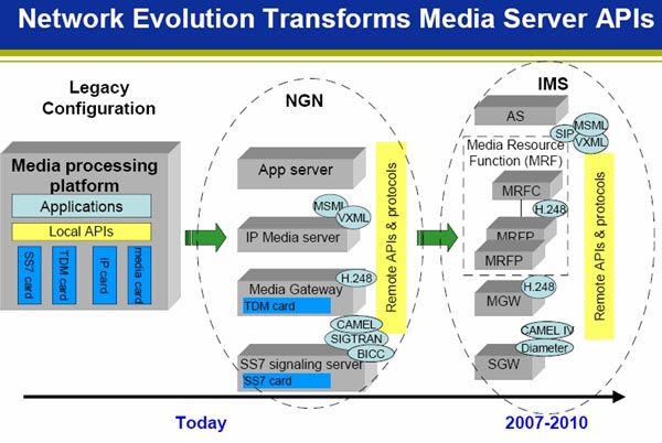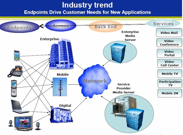 隨著視頻、IP和無(wú)線技術(shù)的日益融合,市場(chǎng)對(duì)電信設(shè)備提出了新的需求。重出江湖的Dialogic在今年1月推出的支持ATCA的第一代多媒體處理平臺(tái)(MMP)。該產(chǎn)品實(shí)現(xiàn)了Dialogic主機(jī)媒體處理軟件(HMP)與ATCA單板機(jī)的有效整合。通過(guò)在對(duì)話和媒體控制過(guò)程中使用標(biāo)準(zhǔn)協(xié)議,該平臺(tái)能夠在有線或無(wú)線環(huán)境中通過(guò)IP和PSTN接口,實(shí)現(xiàn)語(yǔ)音及語(yǔ)音郵件、彩鈴、統(tǒng)一消息和電話會(huì)議等一系列應(yīng)用。該單板機(jī)采用兩顆雙核Intel至強(qiáng)LV 2.0 GHz處理器,因而具有比較強(qiáng)大的多任務(wù)處理性能。此外,該平臺(tái)還采用了一個(gè)高級(jí)子卡(AdvancedMC),用于消除回音并分擔(dān)代碼轉(zhuǎn)換的任務(wù)量。林競(jìng)宇指出:“我們的HMP是可以提供視頻服務(wù)的,把它放到通用平臺(tái)上就可以提供電信級(jí)或企業(yè)級(jí)應(yīng)用。而且,3G時(shí)代到來(lái)以后,視頻服務(wù)的種類會(huì)增多,用基于軟件技術(shù)的媒體處理可以快速響應(yīng)市場(chǎng)需求!