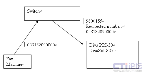Dialogic Diva SS7傳真解決方案簡介:以往的傳真運(yùn)營在處理接收傳真的時(shí)候都是通過提供一個(gè)接入平臺(tái)號(hào)(例如山東網(wǎng)通的商務(wù)新動(dòng)力為9600155),然后通過語音提示輸入傳真信箱號(hào)。這樣做的缺點(diǎn)在于對于所有的客戶來說接入號(hào)碼都是統(tǒng)一的,不能滿足個(gè)性化需求。有一些客戶不想失去原有的傳真機(jī)號(hào)碼。希望網(wǎng)絡(luò)傳真系統(tǒng)能夠綁定他們原來的傳真?zhèn)髡鏅C(jī)號(hào)碼。例如某客戶原有的號(hào)碼是053182090000,通過號(hào)碼綁定,當(dāng)其他用戶向他發(fā)傳真的時(shí)候,撥打的號(hào)碼是053182090000,但是此呼叫會(huì)被呼轉(zhuǎn)到9600155。傳真平臺(tái)根據(jù)原始被叫號(hào)來接收傳真。原有的基于PRI的解決方案不能解決原始被叫號(hào)的傳送問題,所以必須借助SS7網(wǎng)絡(luò)才能實(shí)現(xiàn)?蛻魮艽053182090000,呼叫被呼轉(zhuǎn)到9600155.在Redirected Number字段里原始的被叫號(hào)碼053182090000被傳遞過來!∵@樣傳真運(yùn)營平臺(tái)可以根據(jù)原始被叫號(hào)將該傳真轉(zhuǎn)移到相應(yīng)的傳真信箱。網(wǎng)絡(luò)拓?fù)湟娤聢D: