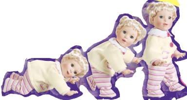 從機(jī)械上來說,夢想娃娃只是件簡單的藝術(shù)品。里面有三個馬達(dá):一個用來走路,一個用來成長,一個用來動嘴。爬行和走路是由古怪的凸輪完成的。凸輪向玩具的某邊傾斜的時候玩具另一邊的手和腳就會向前移動。然后凸輪又向另一邊傾斜,這邊的手腳又向前移動,這樣,玩具就能夠爬行和走路了。