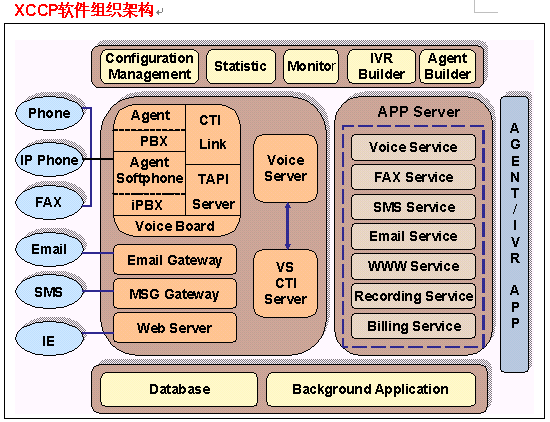 是XCCP的核心組件之一,由聲軟科技的拳頭產(chǎn)品VoiceServer擔當重任,實現(xiàn)呼叫中心系統(tǒng)中自動語音所有功能,集語音、傳真、TTS、短信和語音識別技術(shù)為一體,為客戶建設(shè)多媒體呼叫中心提供技術(shù)基礎(chǔ)。