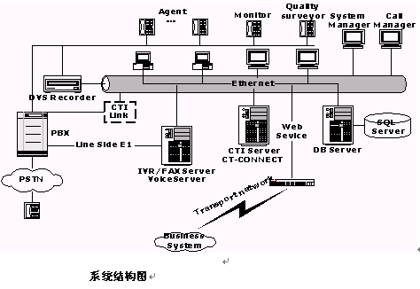 交換機(jī)實(shí)現(xiàn)電話(huà)呼入、呼出功能;還需要提供自動(dòng)排隊(duì)機(jī)系統(tǒng),用于實(shí)現(xiàn)對(duì)來(lái)話(huà)的均衡分配;呼叫管理系統(tǒng),用于有效管理所有話(huà)務(wù);支持IVR;提供CTI Link模塊作為計(jì)算機(jī)/電話(huà)集成接口;同時(shí),交換機(jī)還可作為辦公電話(huà)交換機(jī)使用,系統(tǒng)可支持多家公司的交換機(jī)。
