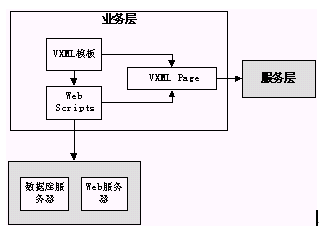 通過(guò)上圖可以看出,二次開(kāi)發(fā)的主要任務(wù)就是業(yè)務(wù)層的開(kāi)發(fā),簡(jiǎn)單的說(shuō),就是以Voice XML為核心,以Web Scripts語(yǔ)言為業(yè)務(wù)接口,形成完整的業(yè)務(wù)流程交由服務(wù)層處理。