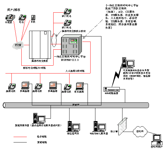 基于一體化交換機的環(huán)保舉報熱線系統(tǒng)產(chǎn)品BYIPX12369-CC2.0采用在中國電信以及金融行業(yè)高端呼叫中心/客戶服務(wù)中心系統(tǒng)領(lǐng)域獲得廣泛應(yīng)用的高品質(zhì)語音/傳真板作為基礎(chǔ)硬件平臺,操作系統(tǒng)采用WINDOWS2000 SERVER,從而構(gòu)成了軟硬件高度集成的一體化交換機呼叫中心平臺。
