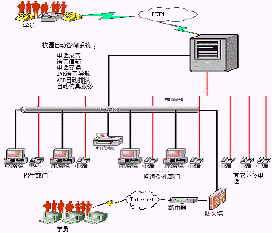學(xué)員利用電話方式,可方便快捷的查詢教育培訓(xùn)機(jī)構(gòu)的介紹、開設(shè)課程情況介紹、教學(xué)地點(diǎn)情況介紹等信息。系統(tǒng)還可預(yù)置相關(guān)介紹內(nèi)容的傳真件,供學(xué)員按需自助索取。