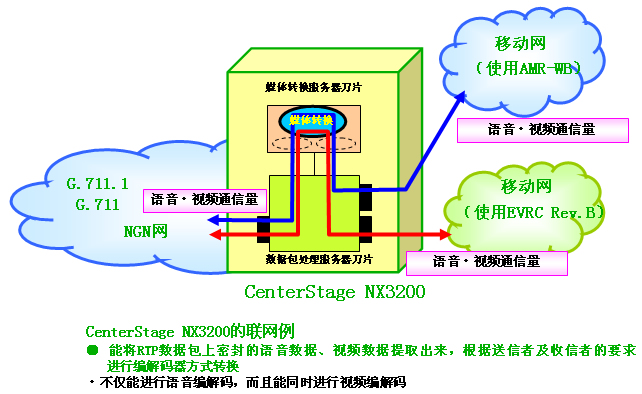 NX3200(以下簡稱「NX3200」)」上,內(nèi)置了行業(yè)首例運營商級寬帶編解碼轉(zhuǎn)換功能。本裝置迅速對應了ITU-T(注2)制定的國際標準G.711.1(注3)等寬帶編解碼器標準,在運用移動網(wǎng)、固定網(wǎng)的各種語音編解碼器及視頻編解碼器之間,能同時進行大容量通信。本產(chǎn)品即日起開始銷往市場。