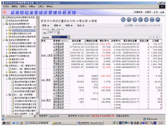 深圳市金點(diǎn)科技有限公司率先采用國際先進(jìn)的商務(wù)智能(BI)和數(shù)據(jù)挖掘技術(shù)、借鑒國外證券行業(yè)成熟的管理經(jīng)驗(yàn),結(jié)合國內(nèi)證券行業(yè)的特點(diǎn),推出"證券經(jīng)紀(jì)業(yè)務(wù)綜合管理分析系統(tǒng)",該系統(tǒng)是證券經(jīng)紀(jì)業(yè)務(wù)的集中管理和決策分析系統(tǒng),具有很強(qiáng)的靈活分析功能。該系統(tǒng)主要是對(duì)證券經(jīng)紀(jì)業(yè)務(wù)經(jīng)營決策、市場營銷和客戶服務(wù)進(jìn)行管理和分析,為證券經(jīng)紀(jì)業(yè)務(wù)管理部門加強(qiáng)對(duì)營業(yè)機(jī)構(gòu)管理、制定營銷戰(zhàn)略、加強(qiáng)對(duì)證券經(jīng)紀(jì)隊(duì)伍的建設(shè)和提高客戶服務(wù)質(zhì)量提供科學(xué)的決策依據(jù)。
