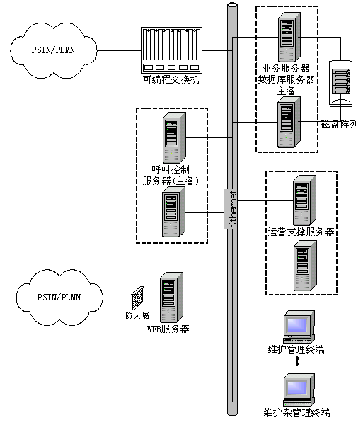 數(shù)據(jù)庫服務(wù)器是系統(tǒng)的系統(tǒng)數(shù)據(jù)和呼叫記錄(CDR)的數(shù)據(jù)儲(chǔ)存單元,支持SQL Server 2000、Oracle、Sybase等通用關(guān)系數(shù)據(jù)庫。用戶數(shù)據(jù)備份可提供數(shù)據(jù)庫自身備份方式、數(shù)據(jù)庫熱備份冗余方式。