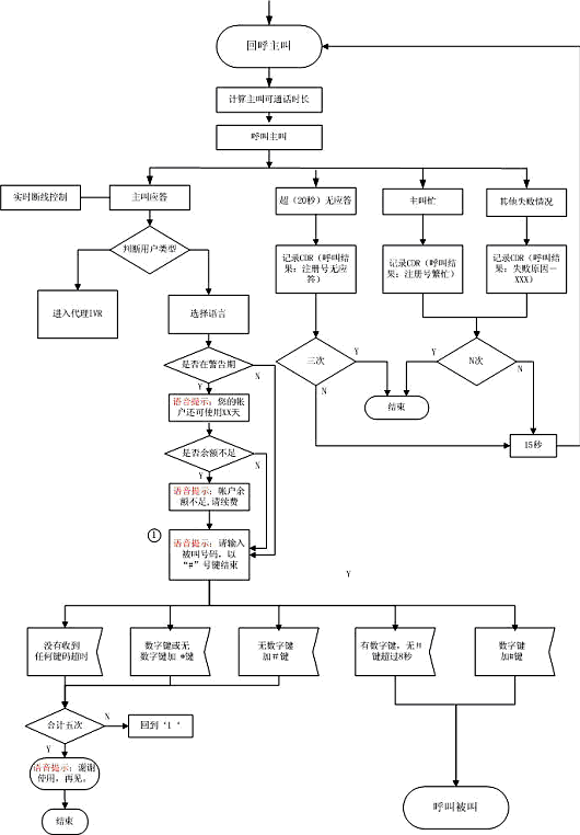對接入系統(tǒng)的電話均進行主叫識別,如果主叫沒有注冊,系統(tǒng)語音提示后,主動釋放電話 |