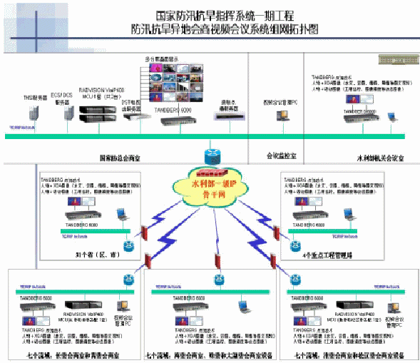 他們調(diào)查了當(dāng)時水利部及下屬機構(gòu)的網(wǎng)絡(luò)現(xiàn)狀:即將安裝的國家防汛抗旱指揮異地會商視頻會議系統(tǒng)會運行在"國家防汛抗旱指揮系統(tǒng)"一期工程骨干網(wǎng)上,水利部網(wǎng)絡(luò)中心到7