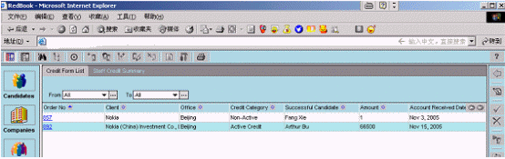 融博獵頭業(yè)務(wù)管理系統(tǒng)已經(jīng)被某著名的獵頭公司正式上線,該系統(tǒng)同時在北京、上海等五個分公司使用。根椐使用客戶反映,該系統(tǒng)功能強(qiáng)大、操作簡單,基本覆蓋了獵頭業(yè)務(wù)的全部內(nèi)容;各種業(yè)務(wù)流程規(guī)范、流暢;各類統(tǒng)計報表靈活、準(zhǔn)確;自動生成簡歷、客戶提交報告、催款通知、項目進(jìn)度報告,極大地提高了企業(yè)的工作效率。該系統(tǒng)與目前國際先進(jìn)的獵頭公司所使用的系統(tǒng)相比,處于領(lǐng)先的地位。