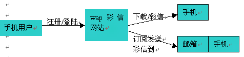 用戶通過手機(jī)注冊(cè)我們的另一項(xiàng)服務(wù)--"無限郵"業(yè)務(wù),可以得到我們?yōu)榭蛻魷?zhǔn)備的手機(jī)郵箱系統(tǒng),通過這個(gè)系統(tǒng)用戶能夠?qū)崿F(xiàn)用手機(jī)終端完成郵件的收發(fā)功能,更重要的是用戶可以以這套系統(tǒng)為中介實(shí)現(xiàn)多媒體信息的從網(wǎng)站的下載和對(duì)手機(jī)終端的發(fā)送。