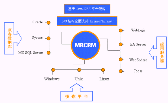從技術(shù)角度講:MRCRM采用先進(jìn)的Java/J2EE平臺(tái)架構(gòu),具有良好的開(kāi)放性、移植性和可擴(kuò)展性。采用獨(dú)有的XBridge框架,通過(guò)XML文檔完成數(shù)據(jù)交換;業(yè)務(wù)層與數(shù)據(jù)層、表現(xiàn)層分離,業(yè)務(wù)邏輯封裝在EJB中。其技術(shù)特點(diǎn)主要為: