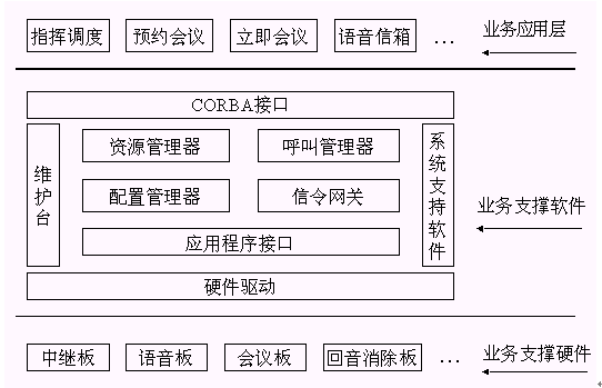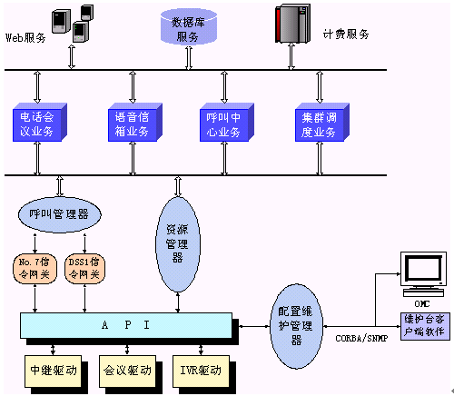 。。其中呼叫管理器通過CORBA技術(shù)向業(yè)務(wù)層提供2個(gè)軟件接口,資源管理器通過CORBA向業(yè)務(wù)層提供6個(gè)軟件接口。