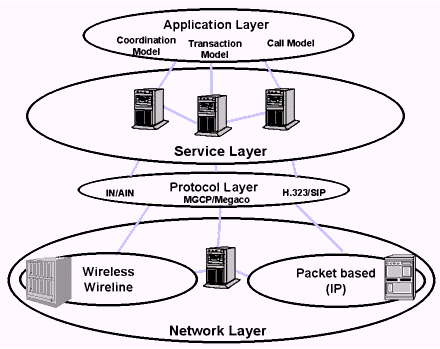 JAIN集成了有線(如PSTN)、無線(GSM、CDMA)和包交換(IP、ATM)網(wǎng)絡,如上圖所示。