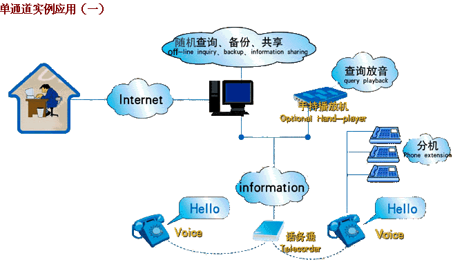 錄音記錄應(yīng)當(dāng)能夠方便地通過多種途徑回放,實現(xiàn)對錄音記錄資料的利用,這也是用戶配置電話錄音系統(tǒng)的最主要目的;胤趴梢酝ㄟ^我們公司開發(fā)生產(chǎn)的選件手持播放器回放,通過網(wǎng)絡(luò)回放,通過聲卡在其它計算機(jī)上回放等多種方式來實現(xiàn)。