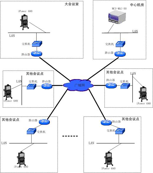 用戶將組建以多點(diǎn)控制單元MCU為中心,采用H.323 IP連接方式的H.323標(biāo)準(zhǔn)會議電視網(wǎng),端口速率為768kbps,多點(diǎn)控制單元要求的容量是可達(dá)到48個節(jié)點(diǎn)的同時(shí)接入。