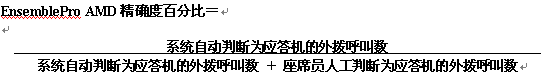 AMD精確度是如何計(jì)算的 ?這一點(diǎn)非常重要。EnsemblePro 的AMD精確度采用的是較為保守的算法-僅計(jì)算那些被應(yīng)答的電話。下面的等式是EnsemblePro對(duì)AMD精確度的定義: