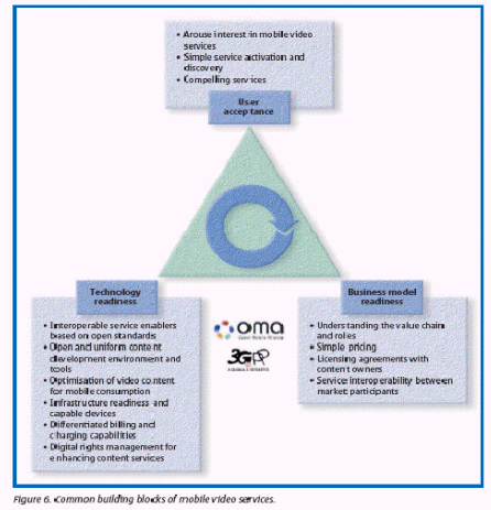 移動視頻服務(wù)會成為其它已制定的多媒體應(yīng)用程序的一個補充。例如,電視并未因網(wǎng)絡(luò)的出現(xiàn)而消逝,同樣的,其它數(shù)字化或傳統(tǒng)的移動傳輸應(yīng)用也不會因為移動視頻的出現(xiàn)而消失。主要概況中略述了移動視頻的好處。下面的文章則著眼于講述移動視頻服務(wù)的普遍發(fā)展障礙,基于大規(guī)模市場的三個關(guān)鍵標(biāo)準(zhǔn)分別是:技術(shù)預(yù)備程度、商業(yè)模式預(yù)備程度和用戶接受程度。主要的觀點將做更細(xì)致的介紹。