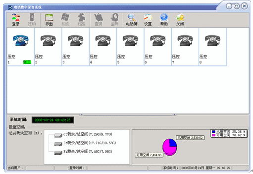 4. 可實(shí)時(shí)顯示所有錄音話機(jī)的狀態(tài),并監(jiān)聽到每一條線路的通話內(nèi)容。