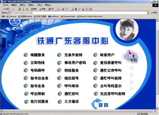 包括:公司介紹、網(wǎng)絡(luò)情況、業(yè)務(wù)介紹、受理手續(xù)、資費(fèi)標(biāo)準(zhǔn)、營業(yè)網(wǎng)點(diǎn)、電信行政法規(guī)、電信行業(yè)管理、地方性法規(guī)、電信信息及知識等內(nèi)容。