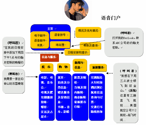 基于在語音識別技術(shù)準(zhǔn)確度上已有突破性的進展,因此可以利用語音,不僅僅是改變原有的鍵盤輸入查詢方式,而且能夠使自動應(yīng)答系統(tǒng)處理更加復(fù)雜的情況。用戶撥打服務(wù)電話的時候,只需說出他/她的需求即可。如在電子黃頁業(yè)務(wù)中,用戶要查詢關(guān)于A公司的情況,服務(wù)電話接通以后就可以直接說出"A公司",而不要按鍵通過一層層的菜單目錄,然后系統(tǒng)就能自動播報出該單位介紹信息和聯(lián)系方式等。