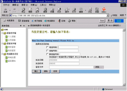 運行管理:語音郵件信箱可以做為企業(yè)電子郵件系統(tǒng)的一部分進(jìn)行運行管理。AllyTalk統(tǒng)一消息中有一個在Windows NT/2000環(huán)境下運行的用于管理目的控制臺