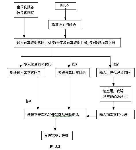3 按1之后,轉(zhuǎn)發(fā)送傳真,詳細(xì)流程參見《3.2傳真接收》。