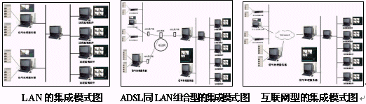 本系統(tǒng)的規(guī)劃設計出發(fā)點是以網(wǎng)絡為核心的,但對網(wǎng)絡的拓撲結(jié)構(gòu)沒做任何的限制,同時在傳輸?shù)慕橘|(zhì)上也沒有任何的附加條件。本系統(tǒng)采用了國際標準的通信協(xié)議HTTP協(xié)議,實際上,本系統(tǒng)在規(guī)劃初衷的典型應用模型中就規(guī)劃了三種不同應用的拓撲結(jié)構(gòu)。一種是局域網(wǎng)的拓撲結(jié)構(gòu),另一種是ADSL同局域網(wǎng)相結(jié)合的拓撲結(jié)構(gòu),第三種是互聯(lián)網(wǎng)的拓撲結(jié)構(gòu)。