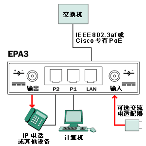 EPA3 是緊湊型適配器,允許 IP 電話或其他附件通過現(xiàn)有的局域網(wǎng)布線接收數(shù)據(jù)并為其供電,而無需修改現(xiàn)有的以太網(wǎng)基礎(chǔ)結(jié)構(gòu)。EPA3 集成了一個 3 端口交換機,以便可以連接一個帶電源的設(shè)備以及另外一個設(shè)備。