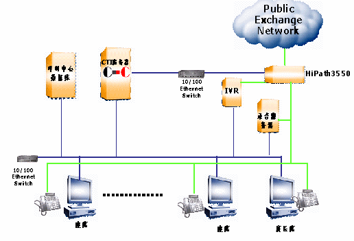 搜易得呼叫中心系統(tǒng)采用SIEMENS HiPath3000通信平臺,融合了商路通公司(www.SynRoute.com)的CTI中間件,為呼叫中心系統(tǒng)的應用開發(fā)提供了功能完善、系統(tǒng)穩(wěn)定、可靠性高、擴展性強等特點的呼叫中心開發(fā)平臺。根據(jù)客戶業(yè)務需求實現(xiàn)呼叫中心系統(tǒng)主要功能:自動語音應答、ACD分配、統(tǒng)計報表、監(jiān)控、錄音等;其中呼叫中心平臺中的業(yè)務系統(tǒng)還包含了客戶資料管理、產(chǎn)品資料管理、售后服務管理、售前支持管理、問卷調查管理、訂單監(jiān)督管理。整套系統(tǒng)很好地滿足了該中心的業(yè)務需求。