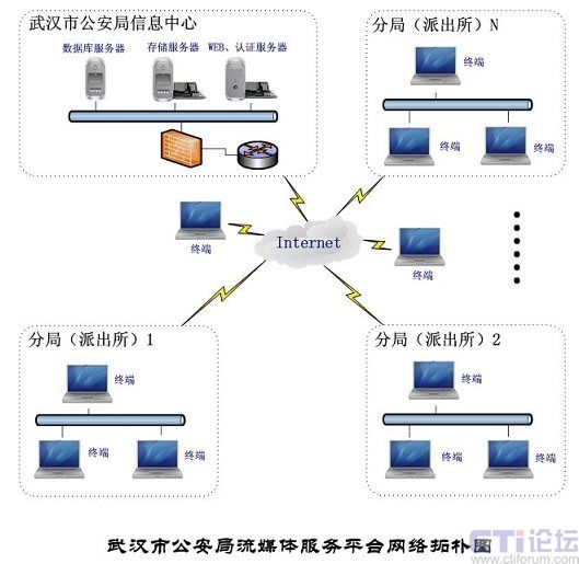 隨著計(jì)算機(jī)技術(shù)和網(wǎng)絡(luò)技術(shù)應(yīng)用的日益普及,各地政府部門都將如何構(gòu)建一個(gè)安全、高效的網(wǎng)絡(luò)系統(tǒng)作為政府信息化發(fā)展目標(biāo)之一。經(jīng)過多年的發(fā)展,武漢市公安局的網(wǎng)絡(luò)系統(tǒng)工程已經(jīng)具有一定規(guī)模。但是,隨著公安系統(tǒng)業(yè)務(wù)量的發(fā)展,目前的公安系統(tǒng)網(wǎng)絡(luò)建設(shè)又有了新的需求。武漢市公安局下屬1000多個(gè)派出所,相互間的信息溝通就是一大難題,原有交流形式較為陳舊且較為復(fù)雜,經(jīng)過單位領(lǐng)導(dǎo)的慎重考慮,決定在原有網(wǎng)絡(luò)系統(tǒng)的基礎(chǔ)上實(shí)施流媒體項(xiàng)目,以加強(qiáng)內(nèi)部信息交流,并提高工作效率。